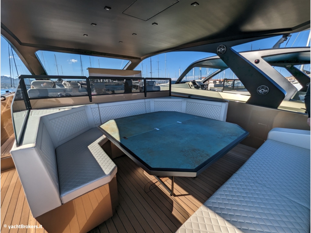 Progettato per offrire la perfetta combinazione di prestazioni, stabilità, comfort ed eleganza, l'APEX 60 è l'incarnazione della filosofia del cantiere. Le linee esterne eleganti e sportive aggressive trasmettono un'estetica sobria, mentre lo scafo in fibra di vetro e composito e il rumore e le vibrazioni ridotti dei motori Volvo Penta IPS offrono la guida più fluida. Il tradizionale rivestimento in teak accentua il design ultramoderno dei mobili e degli accessori che seguono i principi della forma e della funzione. La poppa offre un accesso senza ostacoli alla barca e un ampio prendisole che copre i vani portaoggetti contenenti tutti gli interruttori, le prese e la stazione di attracco necessari. Una zona pranzo e salotto flessibile comprende un tavolo regolabile in altezza e divani splendidamente imbottiti con contenitore integrato. L'angolo cottura multifunzionale può anche essere coperto per fornire posti a sedere extra per gli ospiti o un riposo per il capitano durante il pilotaggio della barca. Un comodo walkaround con ringhiere in carbonio integrate, offre un movimento sicuro in ogni momento e un facile accesso alla prua della barca e alla sua enorme area prendisole per rilassarsi tutto il giorno e godersi l'emozione di cavalcare le onde.