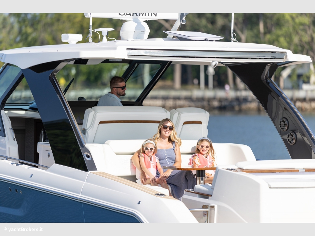 La navigazione sportiva di lusso si rinnova a bordo del 39 LS. La comodità del walkaround vi condurrà a molteplici zone sociali da prua a poppa. A prua, i posti a sedere avvolgenti si trasformano in un ampio prendisole, mentre a poppa gli armatori possono scegliere tra sedute lounge rotanti e stivaggio o un'opzione per l'avventura con un modulo dedicato alla pesca. Una terrazza a babordo amplia il pozzetto e permette di godere ulteriormente dell'acqua, mentre una porta d'imbarco a tribordo consente il passaggio. Sottocoperta, una cuccetta queen a prua, una testa privata e un'area di stivaggio a metà cabina con conversione in cuccetta possono ospitare gli ospiti durante la notte o fornire una pausa tranquilla. Grazie ai due motori Mercury® 600 V12, al sistema di pilotaggio a joystick e ai sistemi di navigazione Garmin® Marine integrati, capitani e ospiti potranno sperimentare potenza e prestazioni entusiasmanti a bordo del 39 LS. Ci contatti per ogni dettaglio.