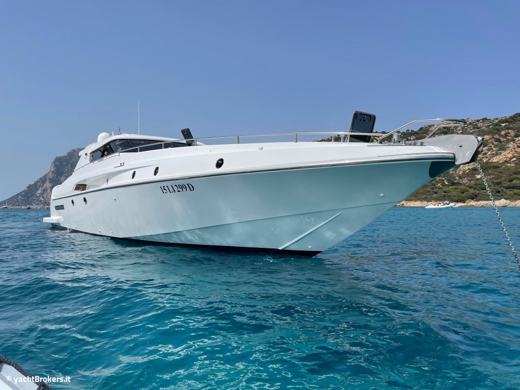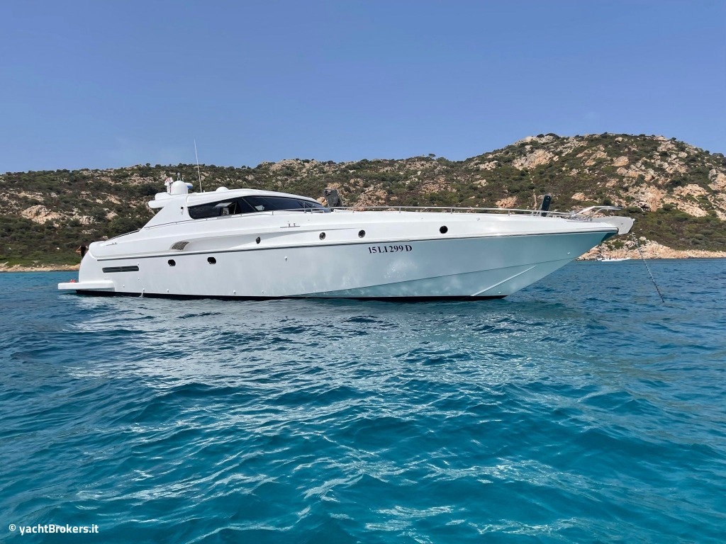 Consegnato al suo primo ed unico armatore, nell'aprile del 1999, questo AB Yachts Follia 75 è un grande e veloce Sport Yacht con propulsione Hamilton Jet e combina i più alti standard di allestimenti e finiture con maneggevolezza e tenuta di mare eccellenti. Il Follia 75 è un aggiornamento dei design precedenti, con motori più potenti e uno scafo a V profonda per fornire una navigazione più veloce e confortevole in mare. Due motori Deutz da 1850 CV ciascuno forniscono l'impressionante potenza ai jet d'acqua tramite riduttori Twin Disc. L'imbarcazione è costruita con schiuma a cellule chiuse tra strati di composito. All'interno del laminato è presente uno strato di elastomero, che mantiene la tenuta anche se il laminato viene danneggiato in una collisione. I ponti sono realizzati in nido d'ape di alluminio. Questa costruzione rende il Follia 75 molto leggero ma anche molto resistente. Due porte a poppa consentono l'accesso ai tender. Un'altra caratteristica del Follia 75 è il suo design del pozzetto futuristico e i controlli molto intuitivi. Il deflettore di retromarcia e gli acceleratori sono controllati con una singola leva e ci sono tre velocità di minimo tra cui scegliere per manovre precise.