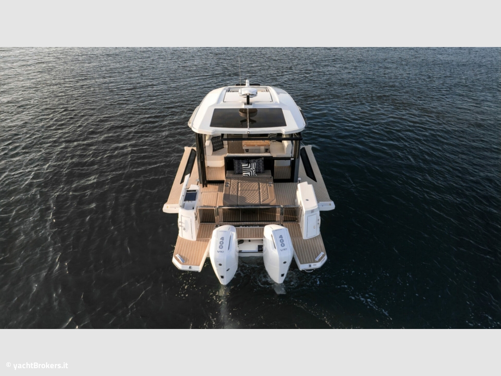 La Saxdor 400 GTC, è progettata per motorizzazioni fuoribordo doppie e sfrutta un?architettura navale esclusiva, garantendo un?esperienza di navigazione memorabile. Il ponte principale presenta un design innovativo con wheelhouse a tutta larghezza, ottimizzando gli spazi interni. Rispetto alla GTO, la GTC aggiunge un tocco di lusso grazie alle ampie superfici vetrate isolate, che creano un ambiente luminoso e accogliente, protetto dagli agenti esterni. Il layout consente un collegamento diretto alle terrazze laterali, per un?esperienza di relax simile a un?isola privata. Sottocoperta, due scale conducono alle cabine doppie ? a prua e a centro barca ? che condividono un bagno; è disponibile anche un terzo letto opzionale per bambini. Ogni dettaglio è progettato con eleganza e funzionalità. Contattaci per maggiori informazioni.