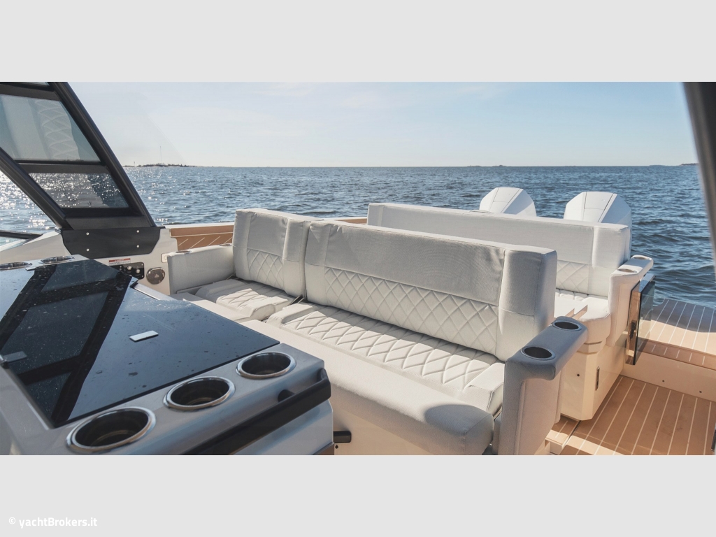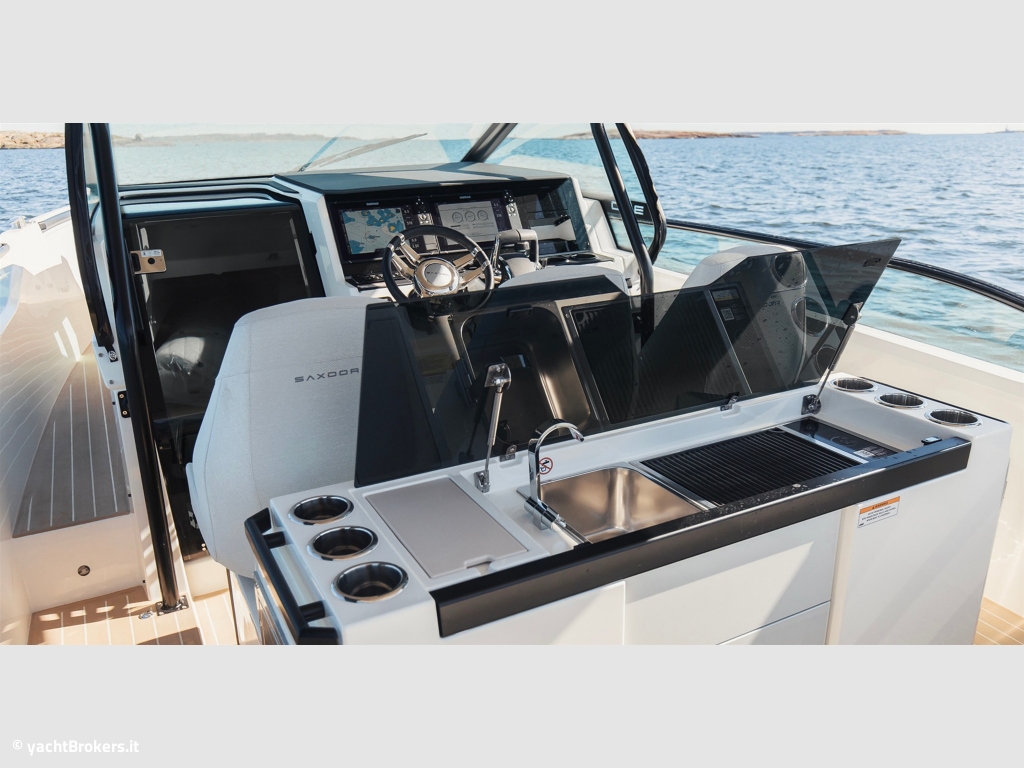 Il Saxdor 320 GTO è il perfetto equilibrio tra design italiano, funzionalità americana, qualità tedesca e un prezzo in stile francese. Dotato di T-top e camminamenti laterali walk-around, offre un design raffinato, prestazioni potenti con motori fuoribordo e una carena efficiente ed economica in navigazione. Tutte e tre le versioni (GTO, GTC e GT) condividono queste caratteristiche distintive. La configurazione con un singolo motore Mercury V8 da 300hp permette di raggiungere una velocità massima di 40 nodi, con una crociera comoda intorno ai 30 nodi. Con due motori da 300hp, invece, il Saxdor 320 supera agilmente i 50 nodi, mantenendo un?andatura ottimale tra i 20 e i 40 nodi. Il prendisole esteso a prua e la dinette convertibile in zona relax offrono ampi spazi per sdraiarsi e godere il sole. Inoltre, con un semplice gesto, lo schienale ribaltabile trasforma le sedute frontali in comode panche rivolte verso prua per accogliere gli ospiti. Contattaci per maggiori dettagli.