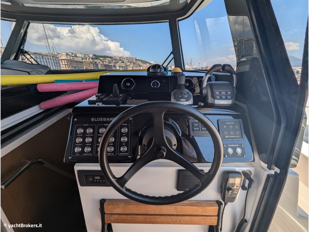 Non un walkaround, non un open, non un day-cruiser o un chase-boat. Il Bluegame 42 è tutti questi insieme. Non c'è più bisogno di scendere a compromessi tra potenza e massimo comfort a bordo. Un design all'avanguardia per una elegante barca a motore che offre sensazioni uniche in mare. Il BG 42 è dotato di un ampio pozzetto, un walk-around protetto da bordi alti per operazioni sicure in mare aperto ed ampia visibilità durante le manovre, grazie alla stazione di controllo centrale e al vetro retrovisore. Con un'ottimizzazione intelligente di luce e spazio, la vivibilità del ponte inferiore è superiore di una barca di parilunghezza. La cabina armatoriale ha un letto matrimoniale king-size e la zona pranzo a prua può essere convertita in un letto matrimoniale in modo da ospitare fino a sei persone. Questo BG 42 è in condizioni pari al nuovo. A Must See. Ci contatti per tutti i dettagli.