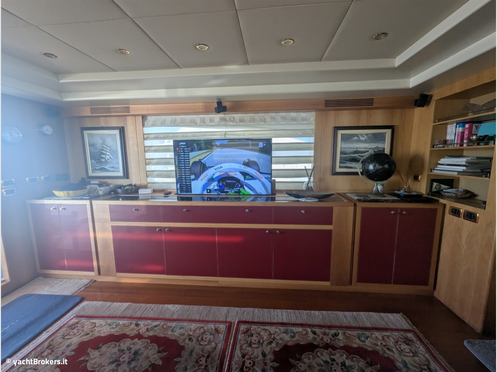 Il Riva 85 Opera è una icona di eleganza e prestazioni. Con una lunghezza fuori tutto di 26 metri, ma con omologazione sotto i 24, offre tutti i vantaggi di un superyacht restando nella categoria delle imbarcazioni da diporto. Questa rara versione a tre cabine e tre bagni è pensata per l?armatore che mette il comfort e la privacy al primo posto. La suite armatoriale, a tutta larghezza, è un vero e proprio appartamento sul mare, arricchito da uno studio privato per lavorare o rilassarsi in totale riservatezza. La cabina VIP e la cabina doppia, entrambe con bagno ensuite, garantiscono agli ospiti degli spazi generosi e finiture di pregio, offrendo un livello di abitabilità e comfort che le configurazioni a quattro cabine non possono eguagliare. Il grande salone, luminoso e curato nei minimi dettagli, conduce ad una galley separata a prua, con accesso latarale per il personale di bordo. Sul Fly, ampio e ben curato, trovano spazio l?area comando, una grande dinette coperta ed un?area relax a poppa. Questo Riva 85 Opera rappresenta l?essenza dello yachting privato di alta gamma: pochi ospiti, spazi generosi, privacy assoluta e il fascino intramontabile del design Riva.