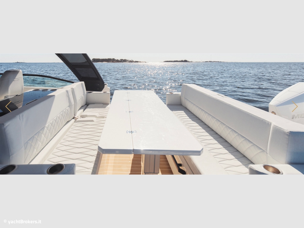Il Saxdor 320 GTO è il perfetto equilibrio tra design italiano, funzionalità americana, qualità tedesca e un prezzo in stile francese. Dotato di T-top e camminamenti laterali walk-around, offre un design raffinato, prestazioni potenti con motori fuoribordo e una carena efficiente ed economica in navigazione. Tutte e tre le versioni (GTO, GTC e GT) condividono queste caratteristiche distintive. La configurazione con un singolo motore Mercury V8 da 300hp permette di raggiungere una velocità massima di 40 nodi, con una crociera comoda intorno ai 30 nodi. Con due motori da 300hp, invece, il Saxdor 320 supera agilmente i 50 nodi, mantenendo un?andatura ottimale tra i 20 e i 40 nodi. Il prendisole esteso a prua e la dinette convertibile in zona relax offrono ampi spazi per sdraiarsi e godere il sole. Inoltre, con un semplice gesto, lo schienale ribaltabile trasforma le sedute frontali in comode panche rivolte verso prua per accogliere gli ospiti. Contattaci per maggiori dettagli.