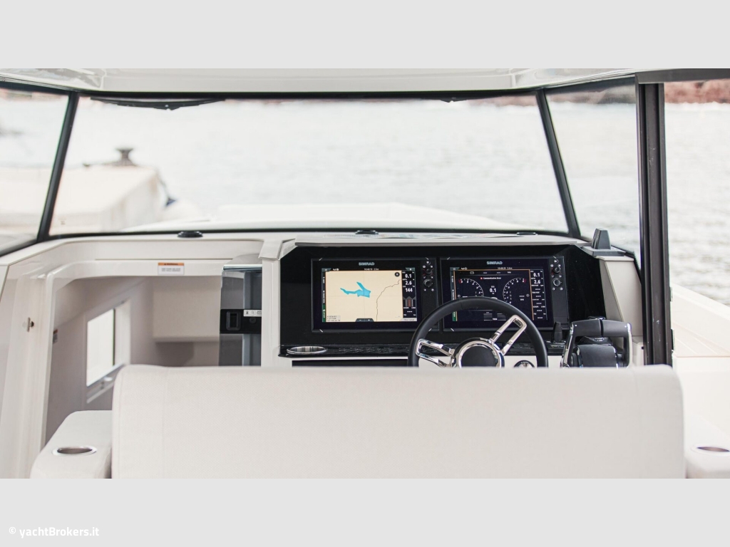 Il Saxdor 340 GTWA stabilisce un nuovo standard in termini di design e funzionalità per la navigazione in ogni condizione atmosferica. Questo modello walkaround fonde perfettamente il piacere di stare all'aperto con un comfort protetto, offrendo uno spazio sicuro e resistente alle intemperie che ti mantiene al riparo in qualsiasi situazione. Essendo l'unico modello wheelhouse walkaround della sua categoria a presentare ampie terrazze laterali, offre passaggi spaziosi e una vasta area aperta che facilitano il movimento e il relax quando aperte. Il divano di prua e il prendisole sul ponte di poppa sono punti deliziosi per rilassarsi e godersi la brezza. La plancia di comando ergonomica presenta un divano frontale per tre persone, garantendo ottima visibilità e comfort. Quando la barca è ferma, il divano può essere ruotato per creare un'accogliente dinette, perfetta per socializzare al coperto. Il ponte inferiore include una spaziosa cabina matrimoniale a prua con WC separato e una cabina di poppa per due, entrambe dotate di ampie finestre che inondano gli interni di luce naturale. Goditi il tuo tempo in acqua senza interruzioni con il Saxdor 340 GTWA Walkaround, indipendentemente dal tempo.
