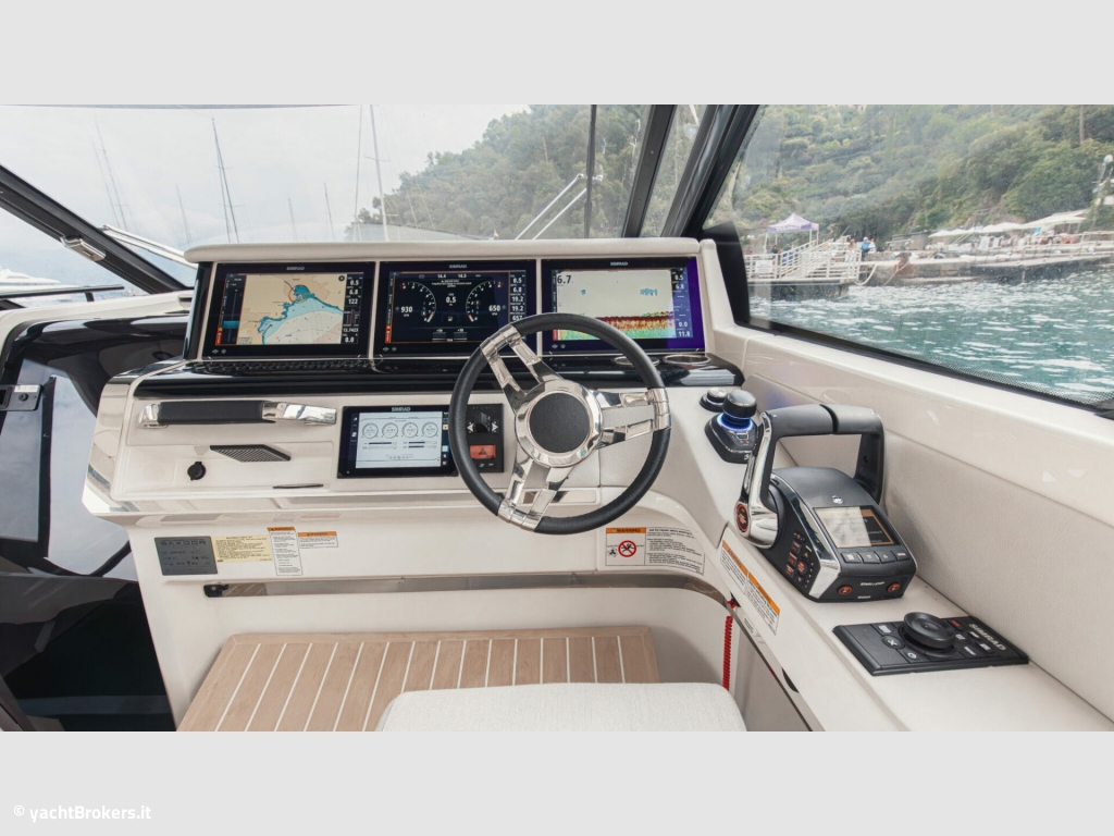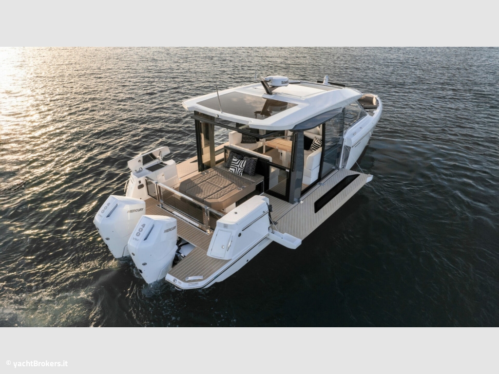 La Saxdor 400 GTC, è progettata per motorizzazioni fuoribordo doppie e sfrutta un?architettura navale esclusiva, garantendo un?esperienza di navigazione memorabile. Il ponte principale presenta un design innovativo con wheelhouse a tutta larghezza, ottimizzando gli spazi interni. Rispetto alla GTO, la GTC aggiunge un tocco di lusso grazie alle ampie superfici vetrate isolate, che creano un ambiente luminoso e accogliente, protetto dagli agenti esterni. Il layout consente un collegamento diretto alle terrazze laterali, per un?esperienza di relax simile a un?isola privata. Sottocoperta, due scale conducono alle cabine doppie ? a prua e a centro barca ? che condividono un bagno; è disponibile anche un terzo letto opzionale per bambini. Ogni dettaglio è progettato con eleganza e funzionalità. Contattaci per maggiori informazioni.