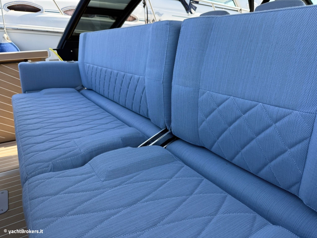 Questo Saxdor 320 GTO modello 2025 è in condizioni impeccabili, con pochissime ore di utilizzo. Lo scafo grigio abbinato alla tappezzeria blu Florida crea un contrasto elegante e moderno, ulteriormente valorizzato dalla pavimentazione in teak sintetico. Le murate abbattibili e la dinette trasformabile in un ampio prendisole rendono questo walkaround sportivo estremamente versatile: perfetto per crociere veloci a 30 nodi come per soste rilassanti in rada. Sottocoperta, una cabina matrimoniale di prua con WC elettrico separato garantisce comfort e privacy. A completare l?equipaggiamento, un impianto audio premium da prua a poppa con subwoofer e una piastra a induzione in coperta. Immediatamente disponibile, assolutamente da vedere.