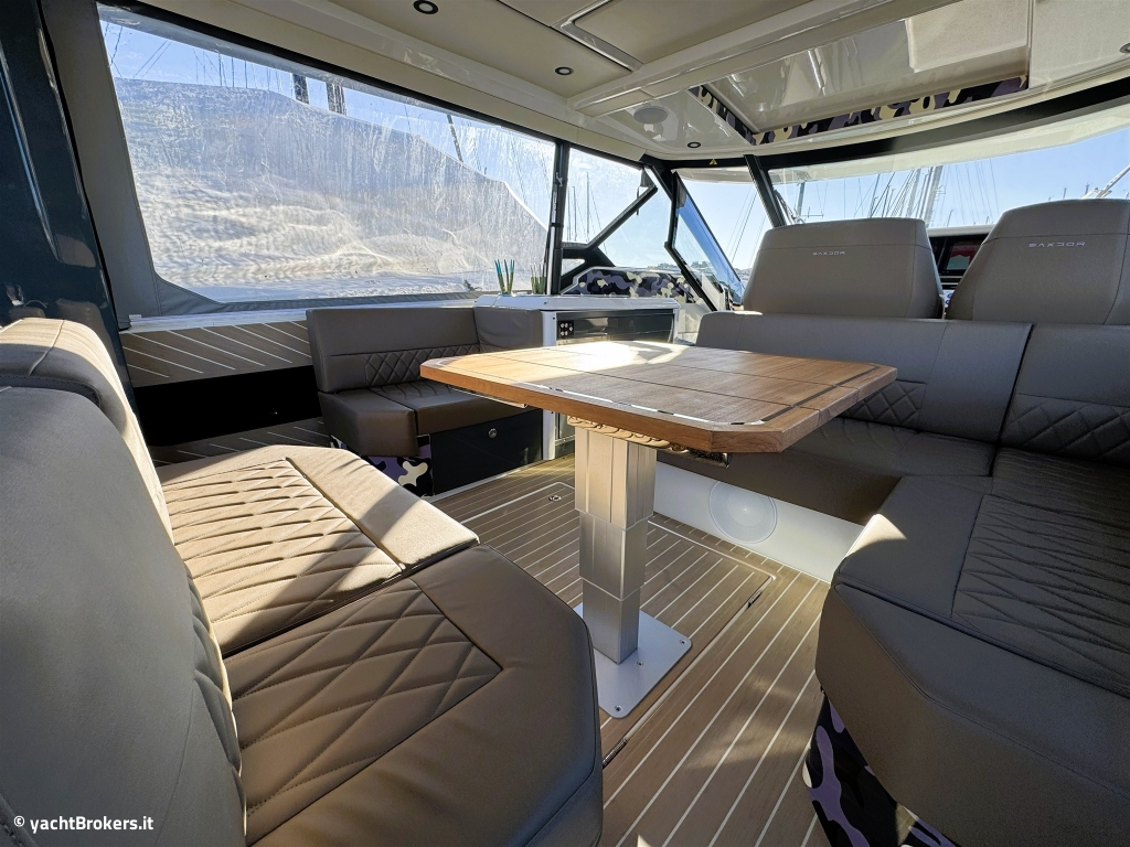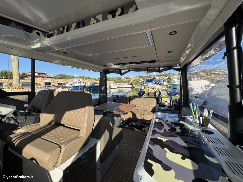 Questo Saxdor 400 GTO praticamente full specs, consegnato al suo primo ed unico armatore nell?estate 2025, incarna al meglio tutte le caratteristiche che hanno reso Saxdor un cantiere d?avanguardia. Le murate abbattibili, lunghe quasi quattro metri, ampliano in modo sorprendente la vivibilità della grande isola living di poppa, facilmente trasformabile in base alle esigenze. Comfort, praticità e stile sono le parole chiave di questa unità, equipaggiata il generator replacement, l'aria condizionata, BBQ esterno, piastra a induzione e doppio frigorifero esterno da 51 litri. I weekend in mare diventano un?esperienza senza compromessi, completata dai tendalini di poppa e di prua e dalla potenza dei due Mercury da 400 hp, capaci di spingere questa regina del mare fino a 45 nodi. Gelcoat in perfette condizioni, protetto dal wrap camouflage.
